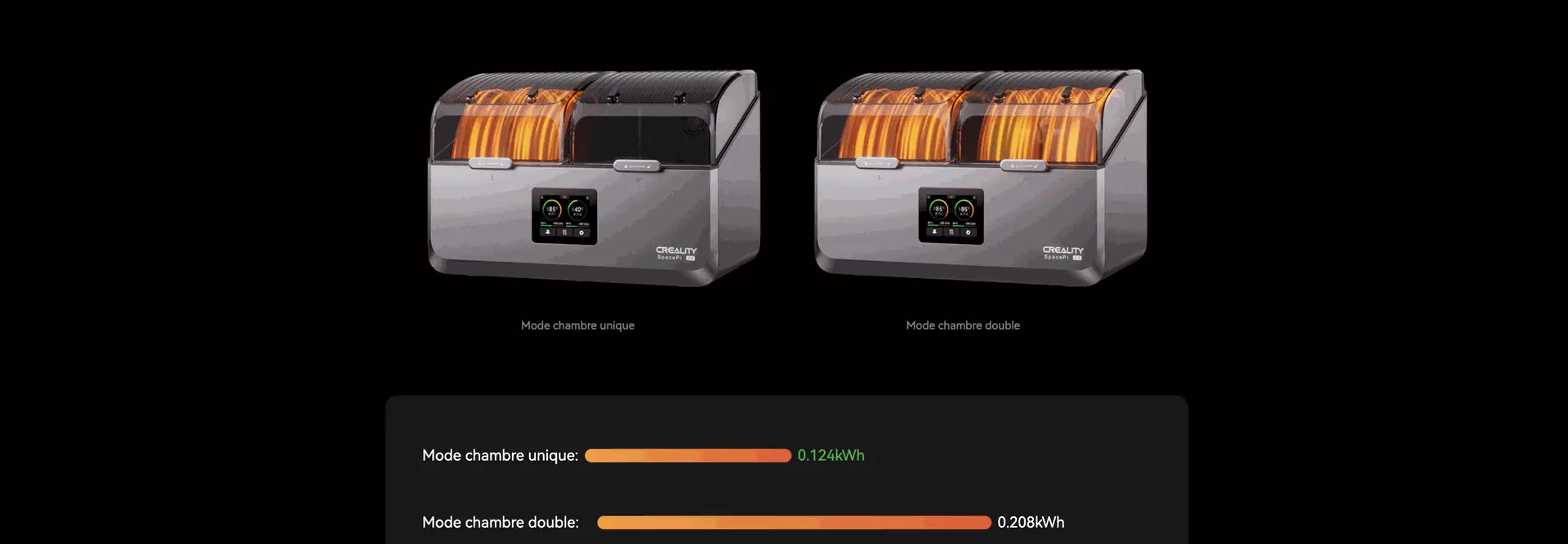 Chaque chambre est équipée d'un chauffage PTC indépendant, permettant le séchage simultané de deux types de filaments à des températures différentes dans une seule machine.